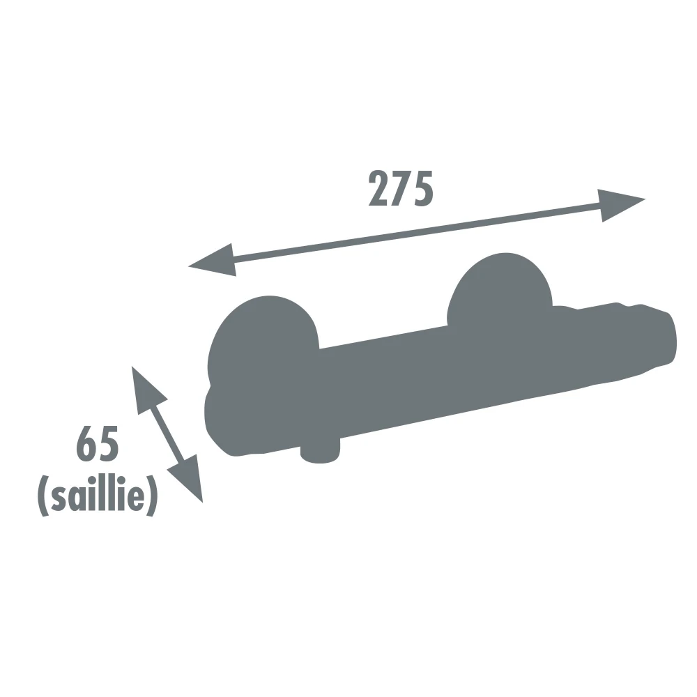 Il est équipé de deux poignées distinctes : l'une règle la température, l'autre contrôle le débit de l'eau. Les poignées sont en métal avec ergot arrière pour une meilleure prise en main. L'entraxe de raccordement est de 150 mm.