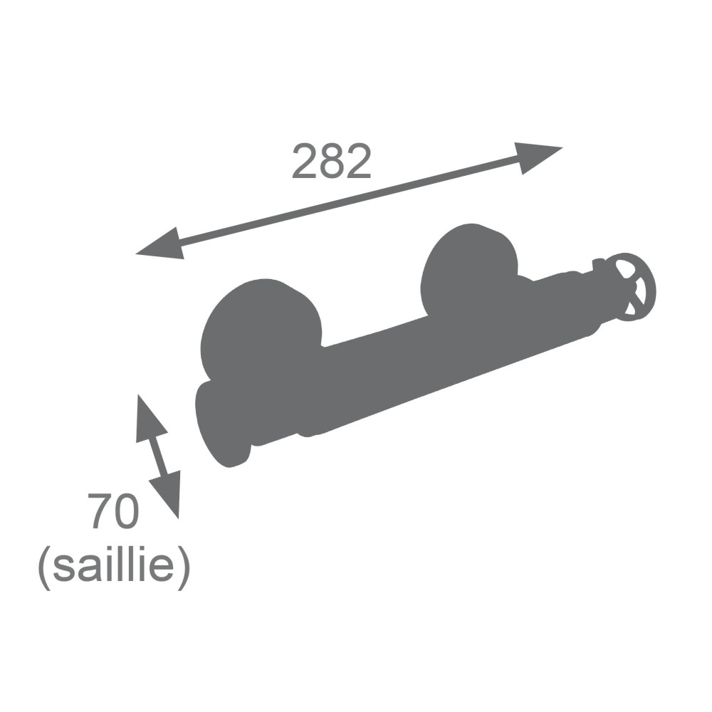 Le thermostatique douche MADDY est équipé de deux poignées distinctes : l'une règle la température, l'autre contrôle le débit de l'eau. Ses poignées décor moleté pour une prise en main sûre et confortable. Son système anti-brûlure avec butée à 38 °C garantit une sécurité optimale à l'usage. L'entraxe de raccordement est de 150 mm.