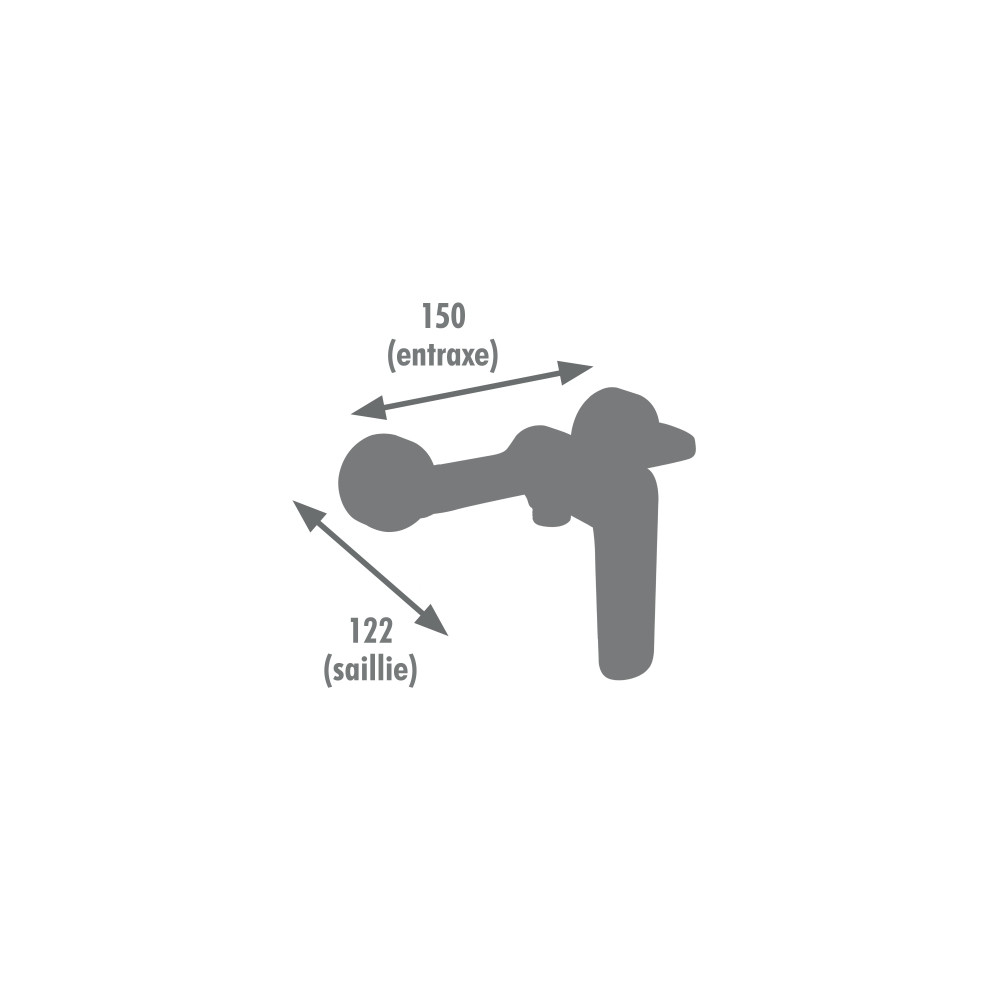 L'entraxe de raccordement est de 150 mm, compatible avec la majorité des installations murales.