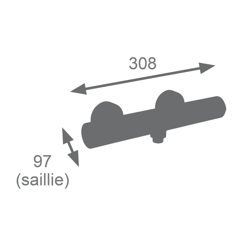 Le mitigeur thermostatique de douche KILYA dispose de deux poignées distinctes : l'une règle la température avec sécurité anti-brûlure à 38°C, l'autre contrôle le débit d'eau.