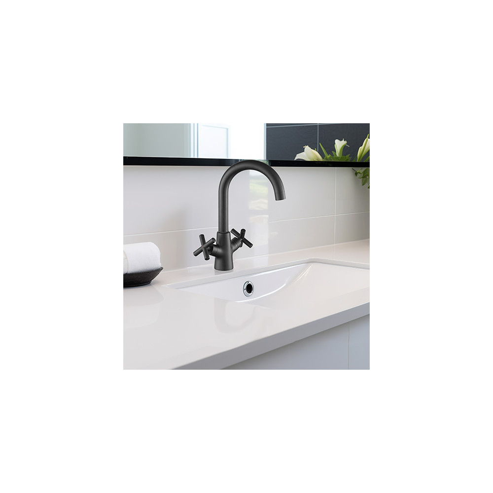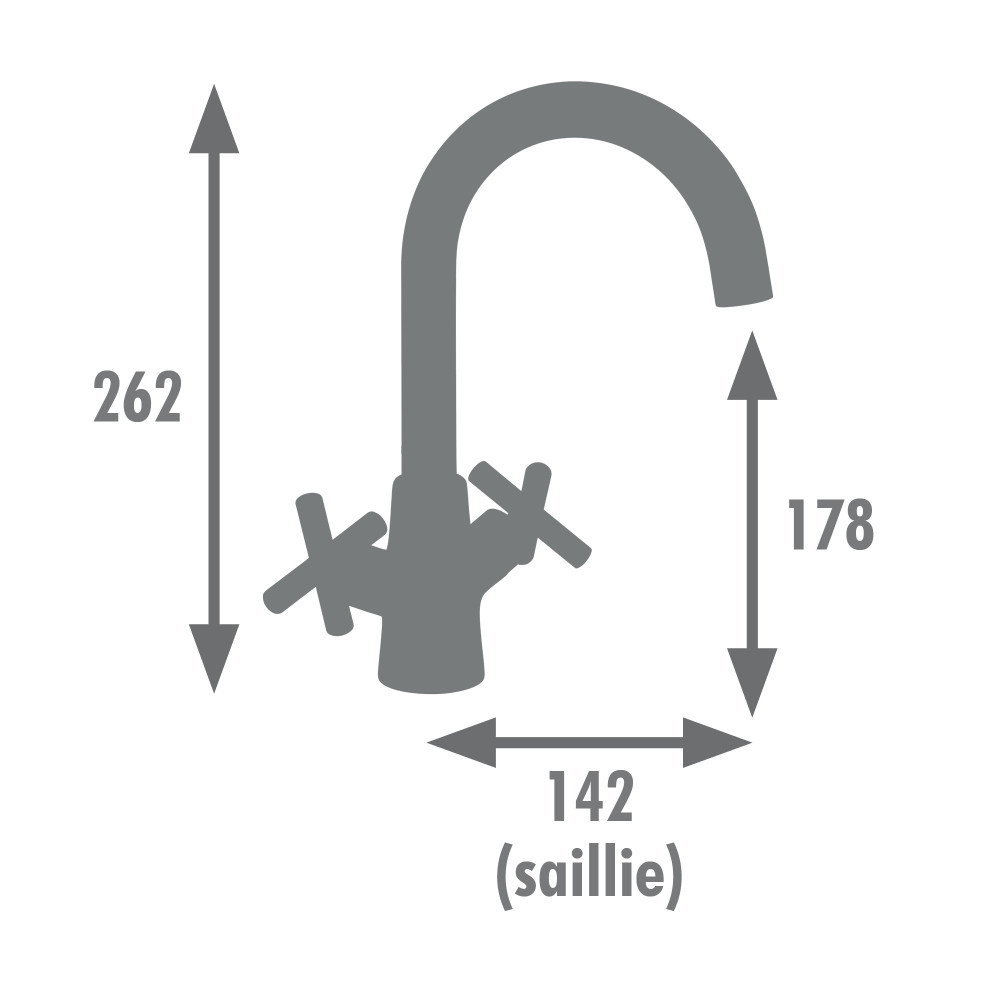 Ses poignées en croisillon, équipées de têtes céramiques 1/4 de tour, assurent un contrôle simple et précis de l'eau chaude et de l'eau froide. Doté d'un aérateur réducteur de débit, il permet de réduire votre consommation d'eau., Le modèle est fourni avec un vidage clic-clac certifié NF assorti au robinet, ainsi que des flexibles de raccordement inox F3/8 (12x17).
