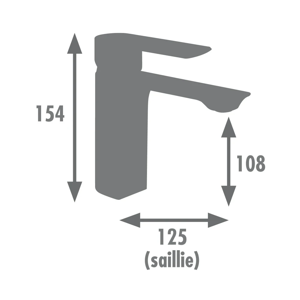 Équipé d'une cartouche céramique diamètre 35 mm, il est livré avec un aérateur invisible fourni avec une clé de démontage pour faciliter l'entretien. La poignée en métal avec décor strié permet de régler la température et le débit. Le bec est fixe et le vidage clic-clac en ABS est certifié NF.