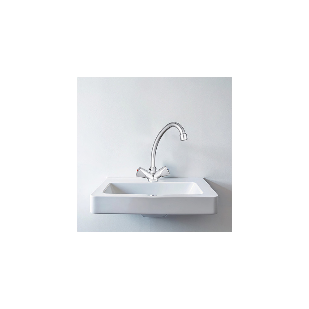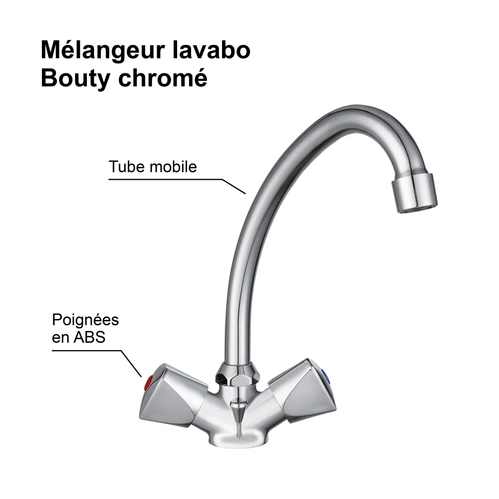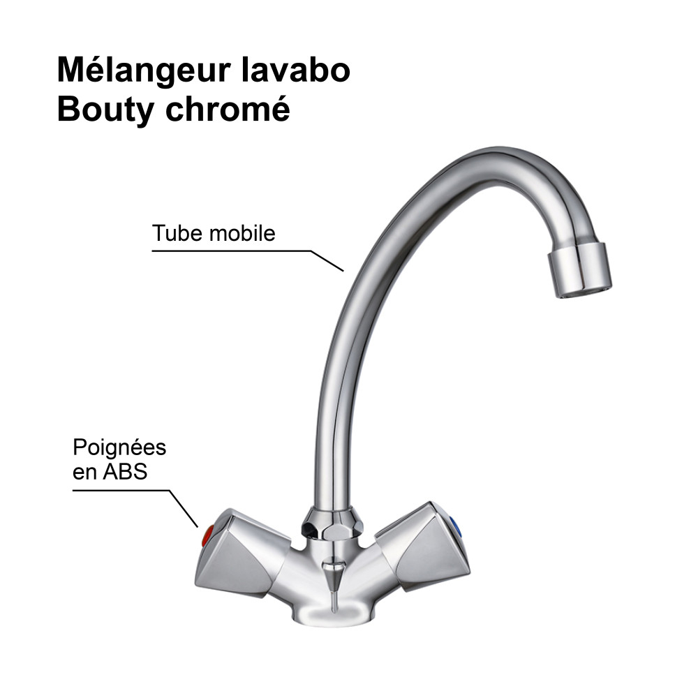 Le mélangeur lavabo BOUTY est équipé de deux poignées pour le réglage de l'eau chaude et froide.