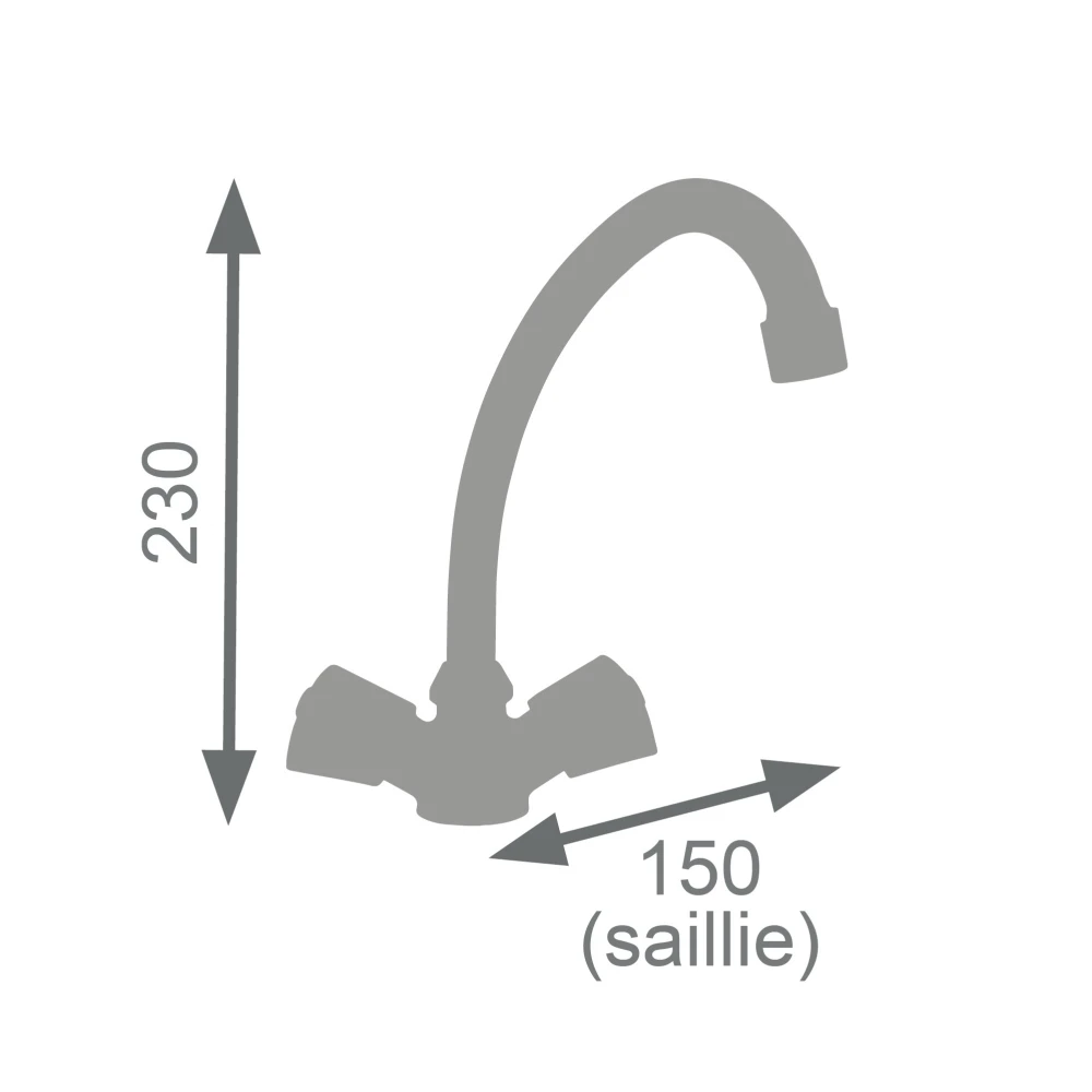 Le bec est mobile. L'embase mesure 42 mm de diamètre. Le vidage est fourni avec tirette et bonde plastique.