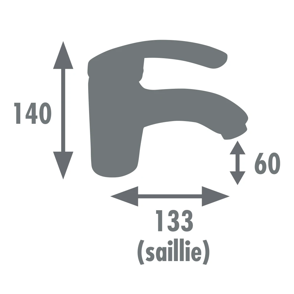 Équipé d'une cartouche céramique diamètre 40 mm, il dispose d'un aérateur réducteur de débit permettant de diminuer la consommation d'eau. La poignée en métal permet de régler la température et le débit. Le bec est fixe et le vidage avec bonde plastique est fourni.