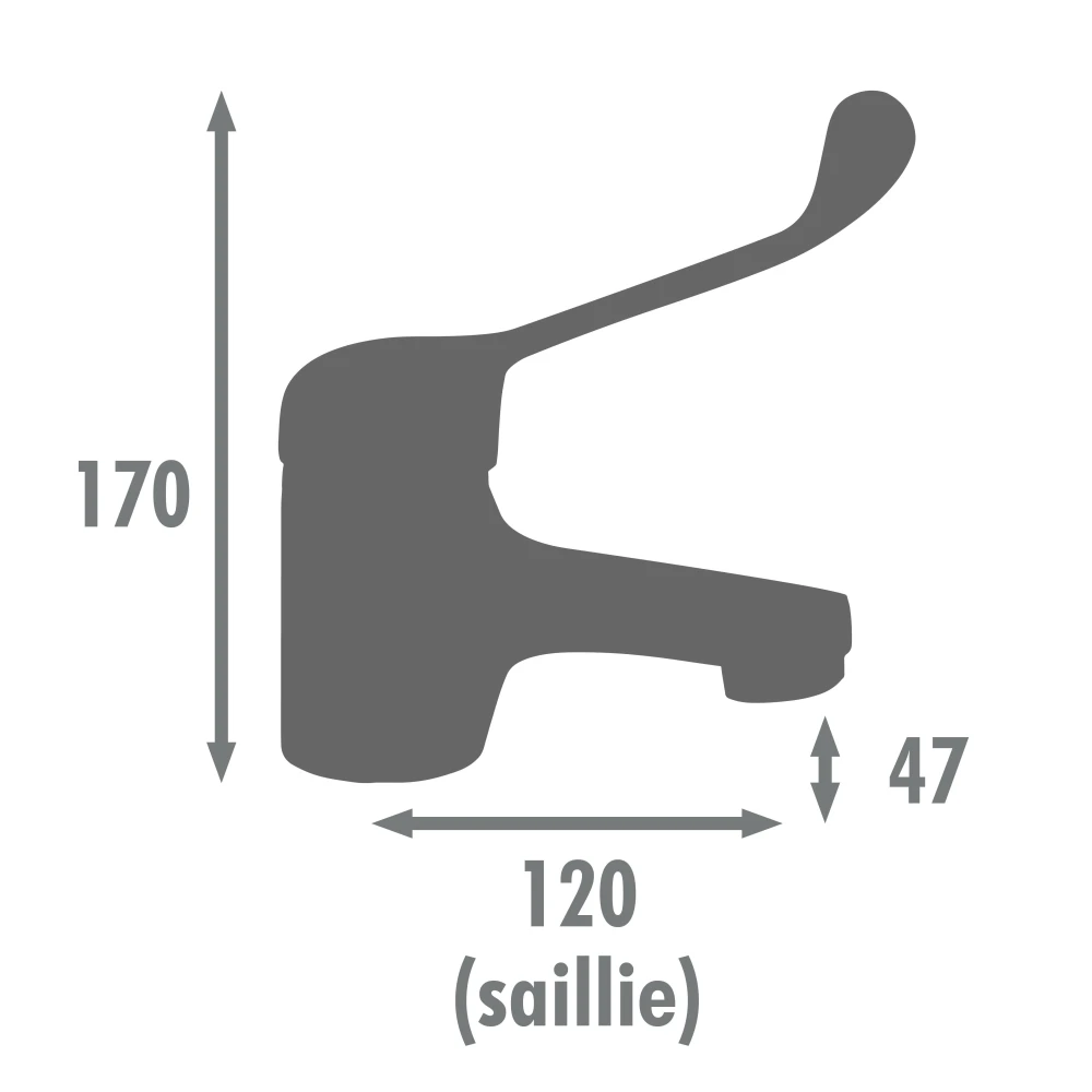 Le mitigeur lavabo ALTEA PMR est spécialement conçu pour les personnes à mobilité réduite et s'adapte parfaitement aux vasques encastrées.