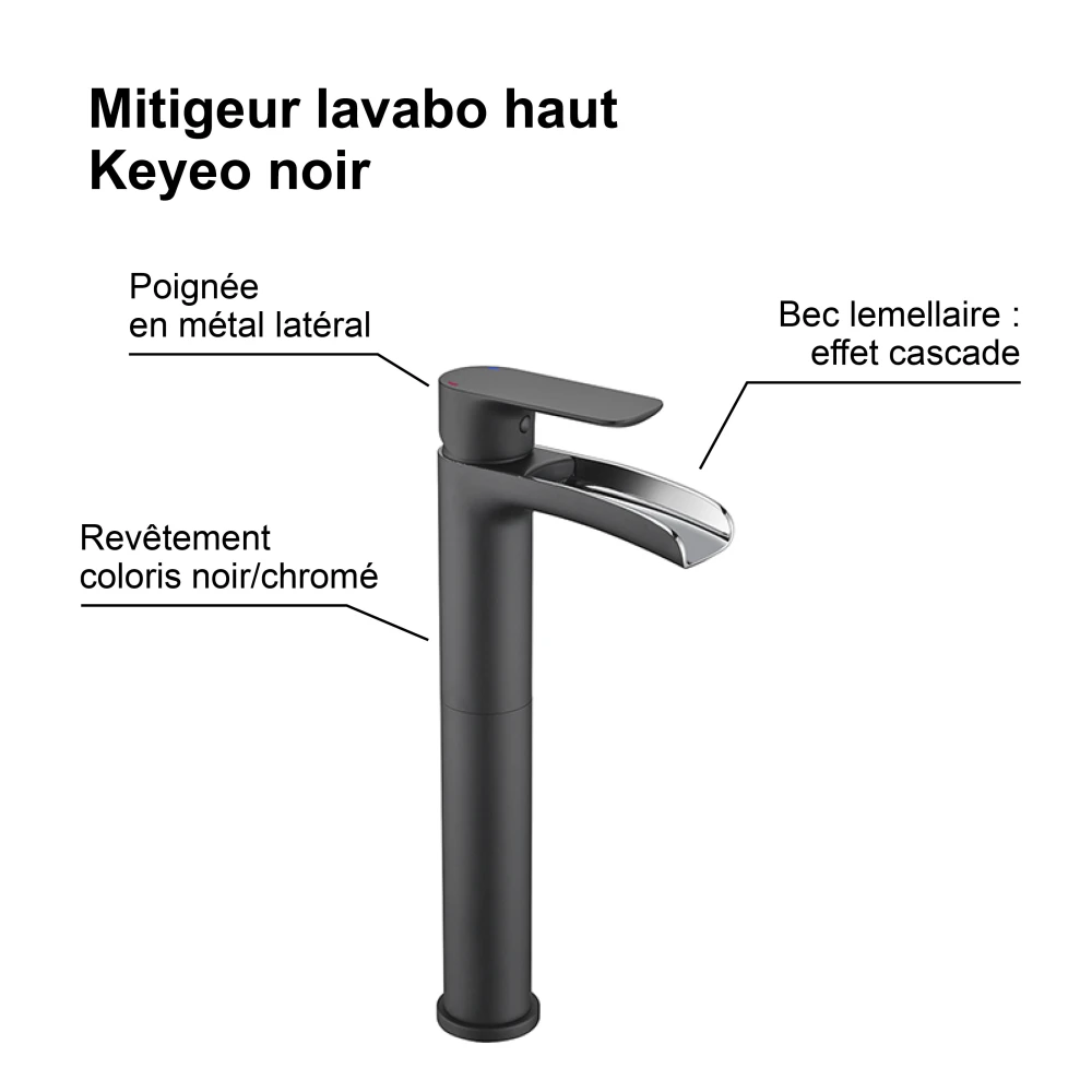 Le mitigeur lavabo KEYEO haut est conçu pour une installation sur vasque haute ou posée.