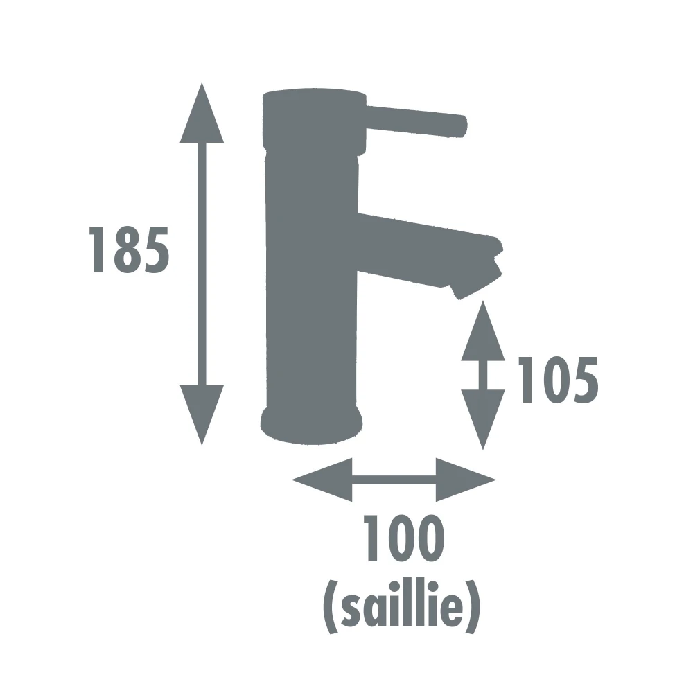 Équipé d'une cartouche céramique diamètre 40 mm, il intègre une butée éco-stop pour limiter le débit et un aérateur réducteur permettant de diminuer la consommation d'eau. La poignée en métal permet de régler la température et le débit. Le bec est fixe et le vidage avec bonde plastique est fourni.