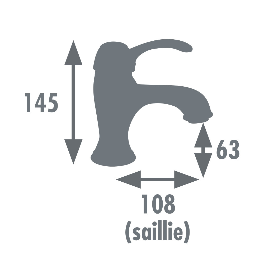 Équipé d'une cartouche céramique diamètre 40 mm, il dispose d'un aérateur réducteur de débit permettant de diminuer la consommation d'eau. La poignée en métal permet de régler la température et le débit. Le bec est fixe et le vidage avec bonde plastique est fourni.