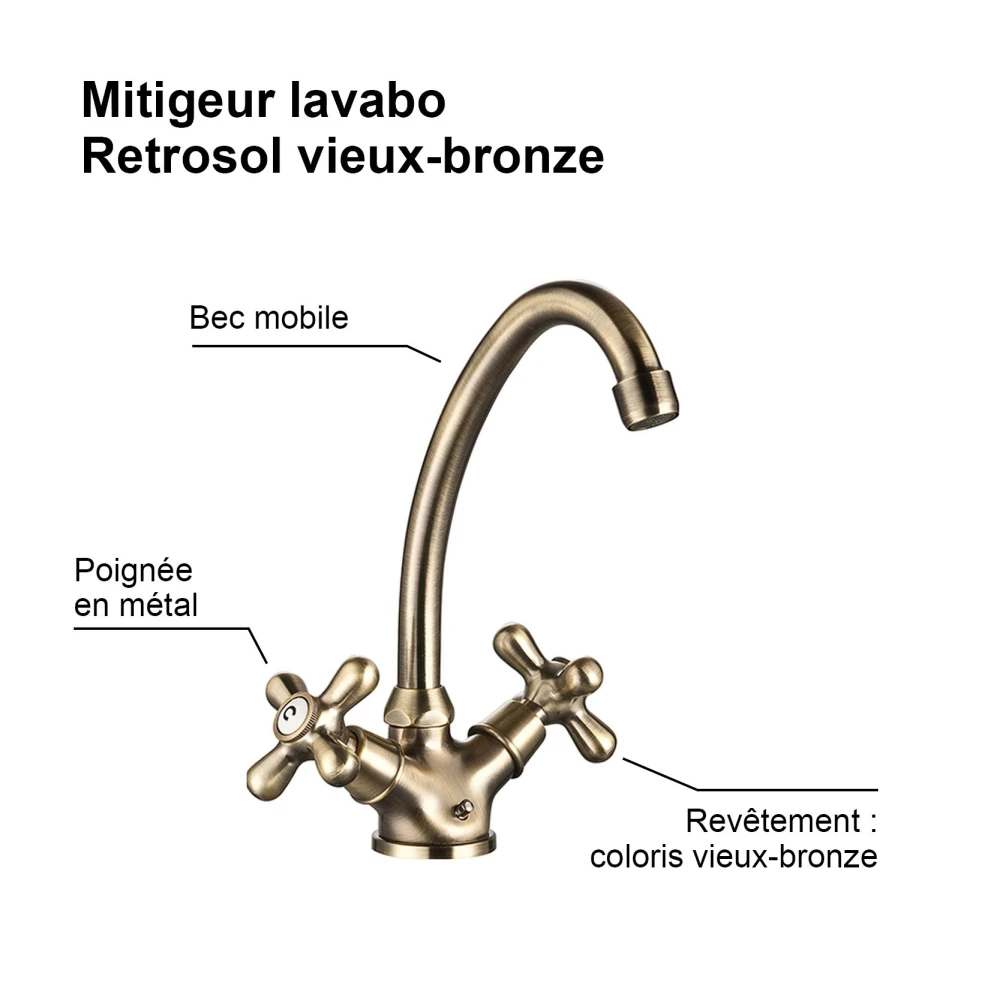 Le mélangeur lavabo RETROSOL s'adapte parfaitement aux vasques encastrées.