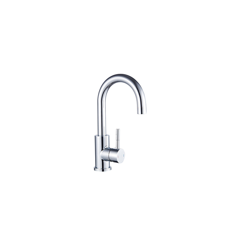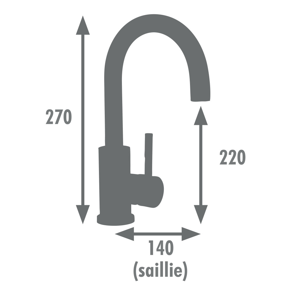 Équipé d'une cartouche céramique diamètre 35 mm, , il intègre une butée éco-stop pour limiter le débit. La poignée latérale permet de régler la température et le débit. Le bec est courbé et mobile, il dispose d'un aérateur avec un débit de 7 L/min. Le vidage clic-clac en ABS certifié NF est fourni. Écrou de serrage rapide inclus pour une pose simplifiée.
