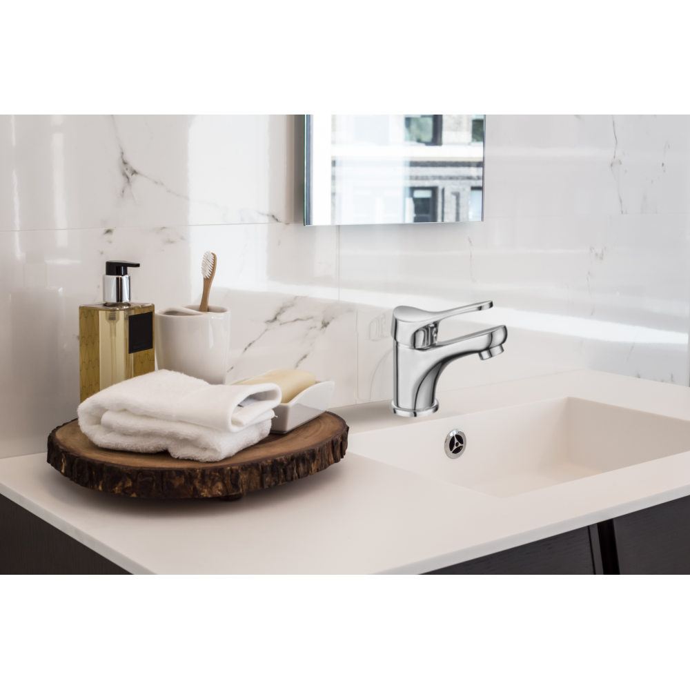 Le mitigeur lavabo SONORA s'adapte parfaitement aux vasques encastrées.