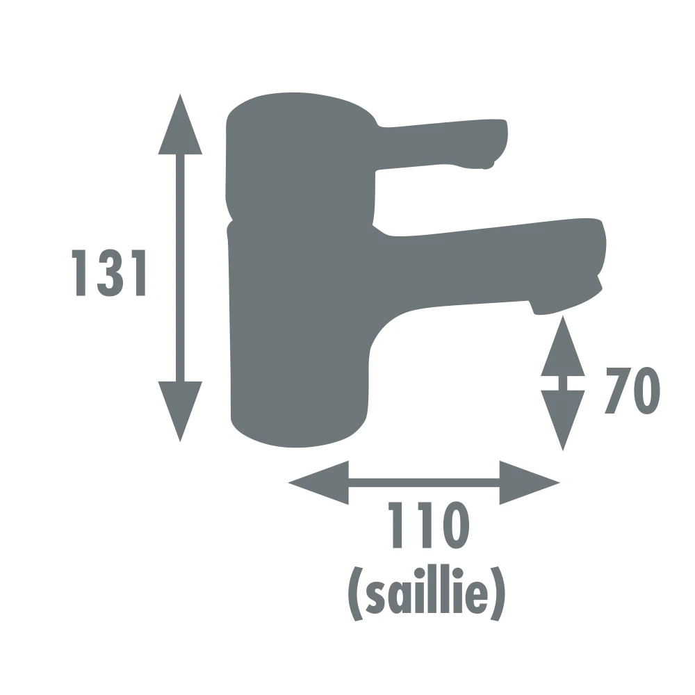Il est équipé d'une cartouche céramique de 40 mm et d'un aérateur réducteur de débit permettant de diminuer la consommation d'eau. La poignée assure un réglage précis du débit et de la température. Vidage tirette + bonde plastique inclus. Le bec est fixe et monté sur une embase de 49 mm. L'ensemble est complété par des flexibles de raccordement inox F3/8 (12x17).