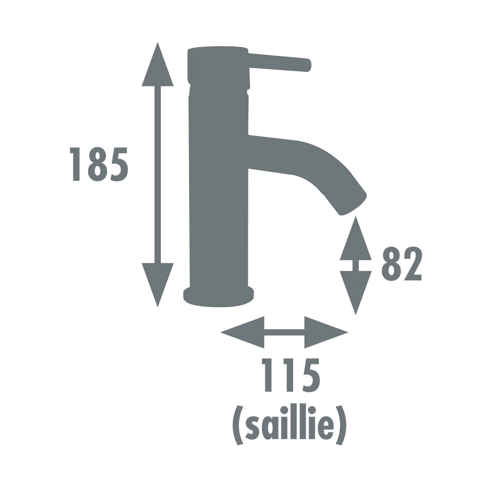 Équipé d'une cartouche céramique diamètre 35 mm, il dispose d'une cartouche à économie d'énergie avec ouverture de l'eau froide en position centrale, d'une butée éco-stop pour limiter le débit et d'un aérateur réducteur permettant de diminuer la consommation d'eau. La poignée en métal permet de régler la température et le débit. Le bec est fixe et le vidage avec bonde plastique est fourni.