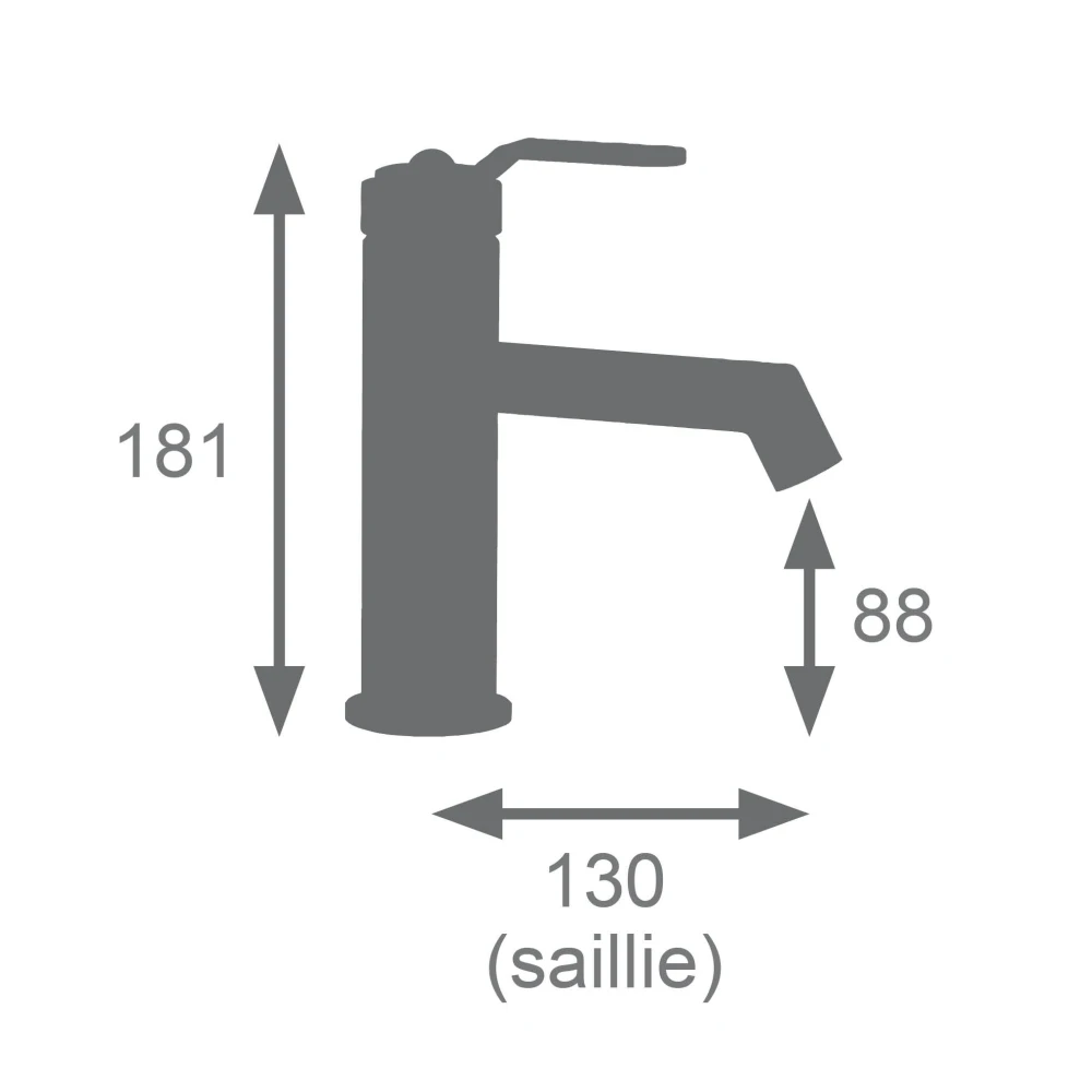 Il est équipé d'une cartouche céramique de 35 mm et d'un aérateur invisible facile à retirer grâce à la clé de démontage fournie. La poignée en métal avec bague décor moleté permet un réglage confortable de la température et du débit. Le bec est fixe et repose sur une embase de 52 mm. Le modèle est fourni avec un vidage clic-clac ABS NF, ainsi que des flexibles de raccordement inox F3/8 (12x17) de 35 cm. Écrou de serrage rapide à la main inclus pour une installation sans outil.