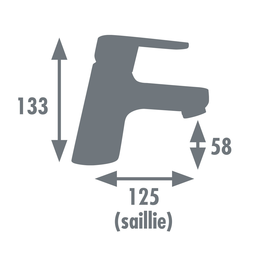 Il est équipé d'une cartouche céramique de 35 mm et d'un aérateur réducteur de débit permettant d'économiser l'eau. La poignée en métal assure un réglage fluide de la température et du débit. Écrou de serrage rapide à la main inclus pour une installation sans outil. Le bec est fixe et repose sur une embase de 50 mm. Le modèle est fourni avec un vidage clic-clac en ABS certifié NF, des flexibles de raccordement inox F3/8 (12x17) ainsi qu'un écrou de serrage Ø 9 mm pour une installation sécurisée.