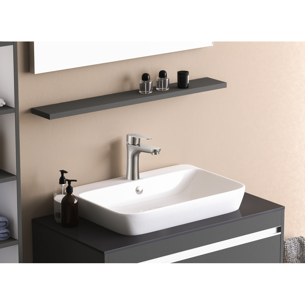 Le mitigeur lavabo ONABI s'adapte parfaitement aux vasques encastrées. Il est équipé d'une cartouche céramique Ø 35 mm à économie d'énergie, qui ouvre l'eau froide en position centrale afin d'éviter le déclenchement inutile d'eau chaude. Il dispose également d'une butée éco-stop et d'un débit à 5 L/min, avec possibilité d'atteindre 7 L/min pour plus de confort.