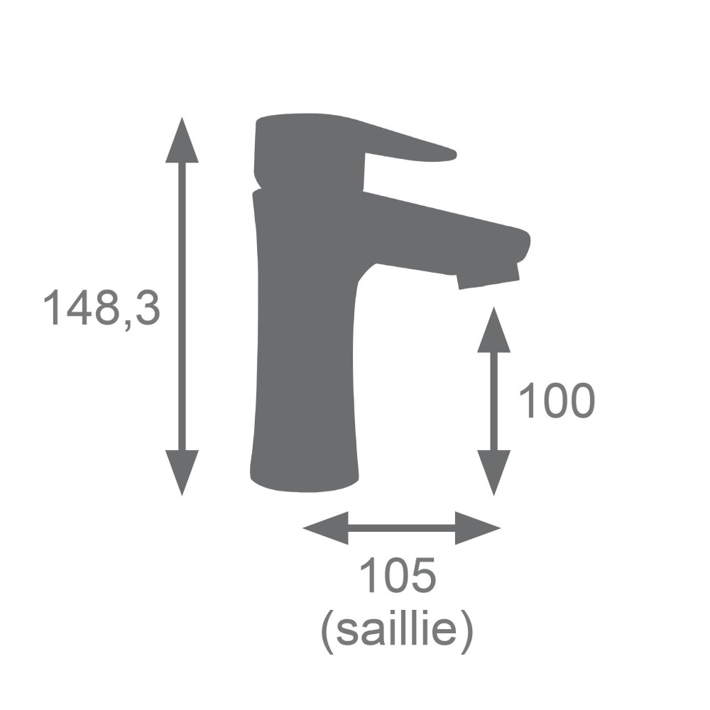 La poignée permet un réglage précis du débit et de la température. Le bec fixe repose sur une embase de 45 mm. Le vidage clic-clac en ABS certifié NF est assorti au robinet, et les flexibles de raccordement inox F3/8 (12x17) de 45 cm assurent une installation fiable et durable. Écrou de serrage rapide à la main inclus pour une installation sans outil.
