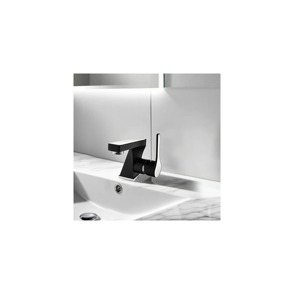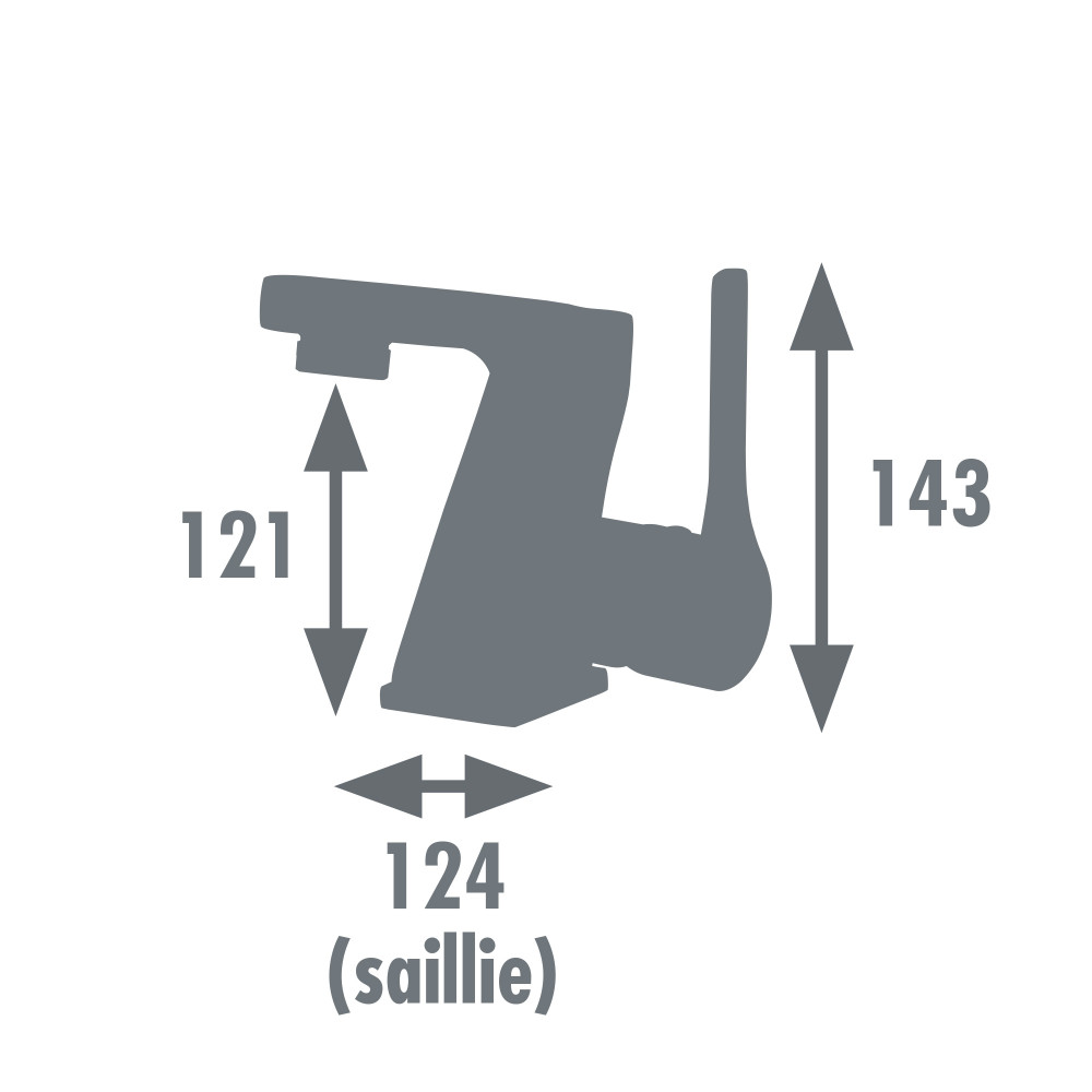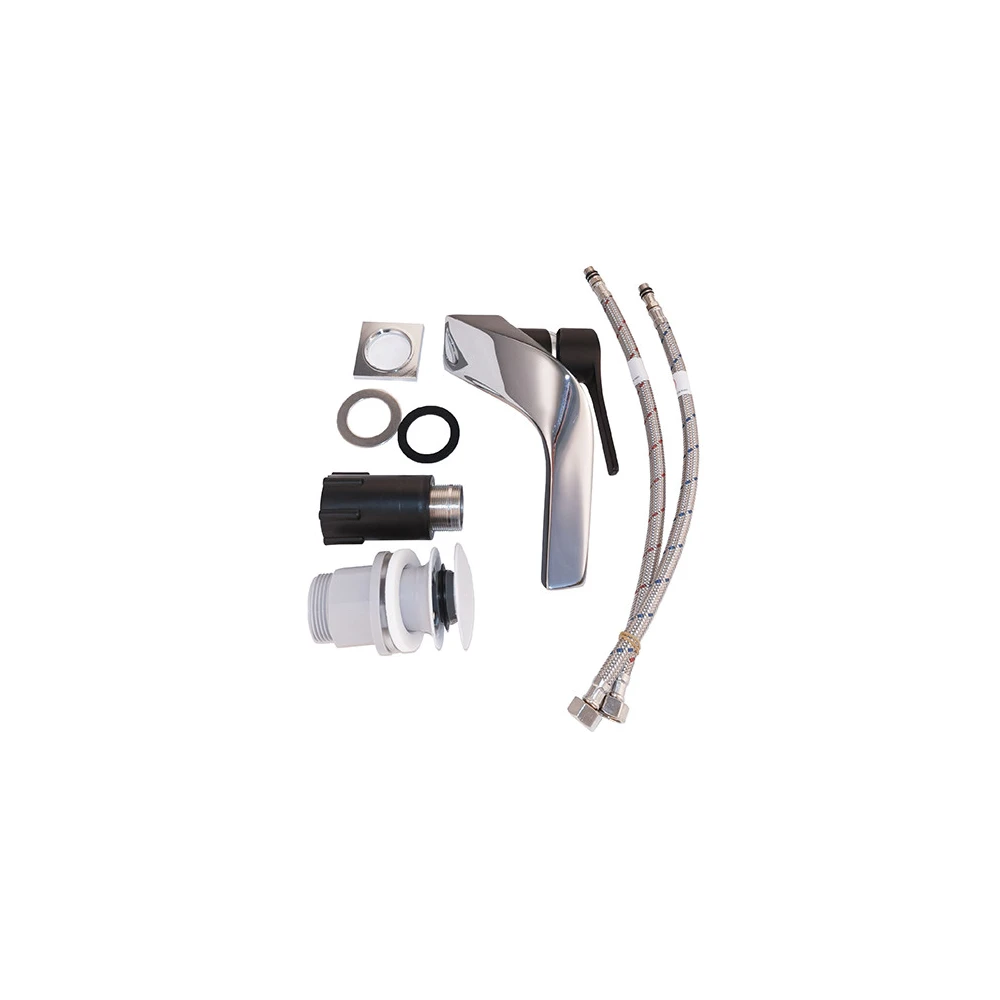Équipé d'une cartouche céramique de 35 mm,avec économie d'énergie grâce à l'ouverture en eau froide en position centrale. Une butée éco-stop et un aérateur régulateur de débit permettent de réduire efficacement la consommation d'eau. La poignée assure un réglage fluide du débit et de la température. Le bec est fixe et repose sur une embase de 50x50 mm. Le modèle est fourni avec un vidage clic-clac ABS NF et des flexibles de raccordement inox F3/8 (12x17). Écrou de serrage rapide à la main inclus pour une installation sans outil.