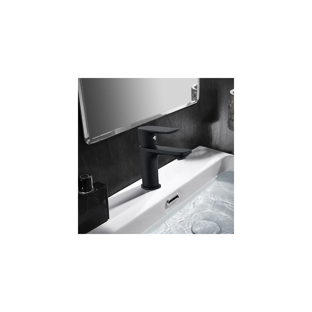 Équipé d'une cartouche céramique de 35 mm et d'un aérateur réducteur de débit permettant de réduire sa consommation d'eau, il allie confort et performance. L'aérateur est invisible et facile à retirer avec une pièce de monnaie, pour un entretien simplifié et une esthétique épurée. La poignée en métal permet de régler facilement le débit et la température. Le bec est fixe et repose sur une embase de 52 mm. Le modèle est fourni avec un vidage clic-clac NF, assorti au robinet, ainsi que des flexibles de raccordement inox F3/8 (12x17). Écrou de serrage rapide à la main inclus pour une installation sans outil.