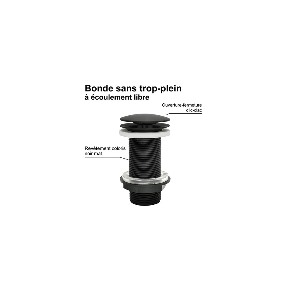 Bonde de lavabo à écoulement libre - Spécial plan de travail épais