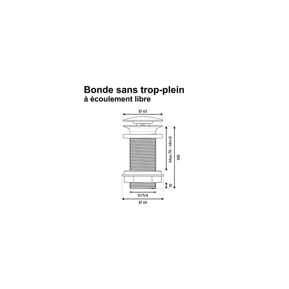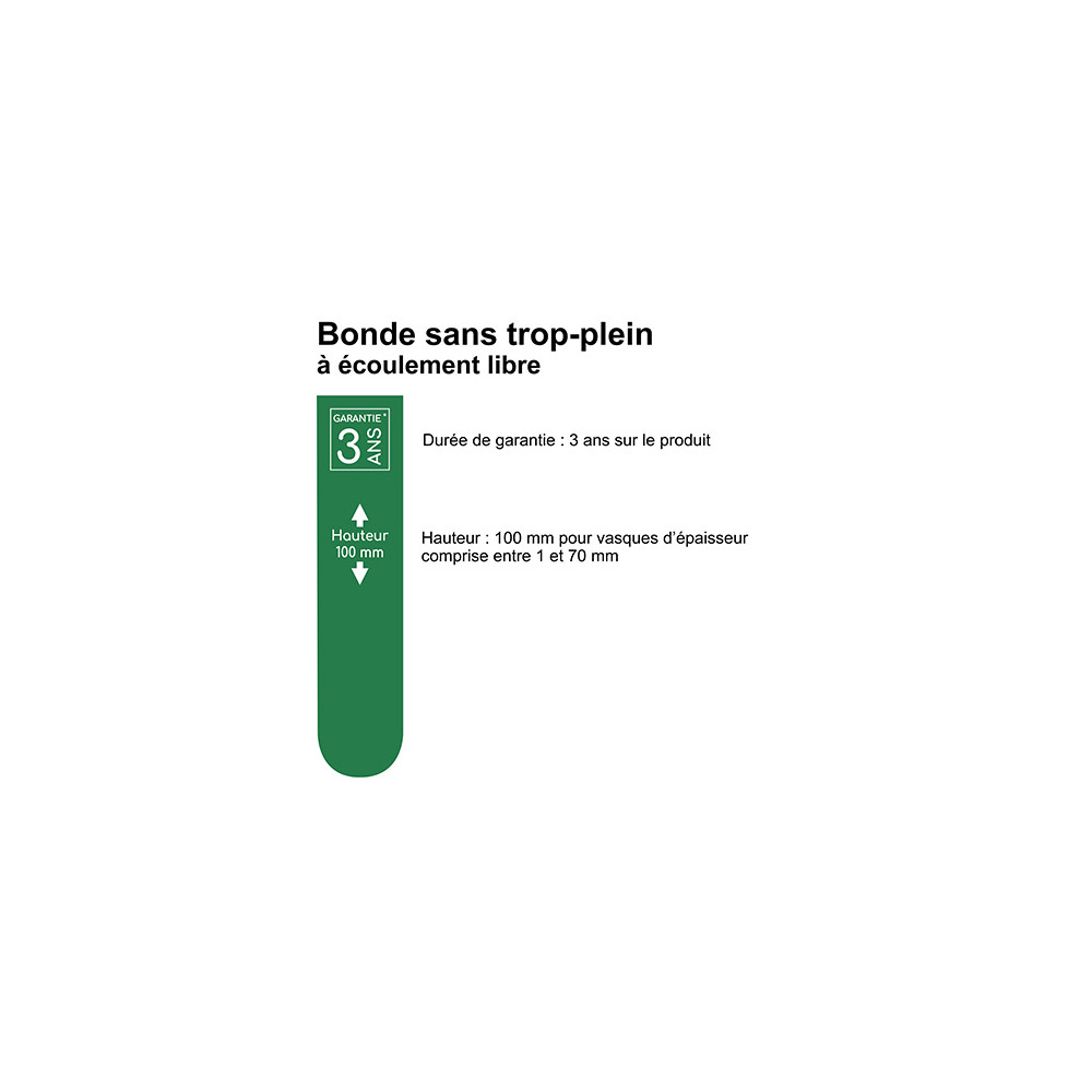 Bonde de lavabo à écoulement libre - Spécial plan de travail épais