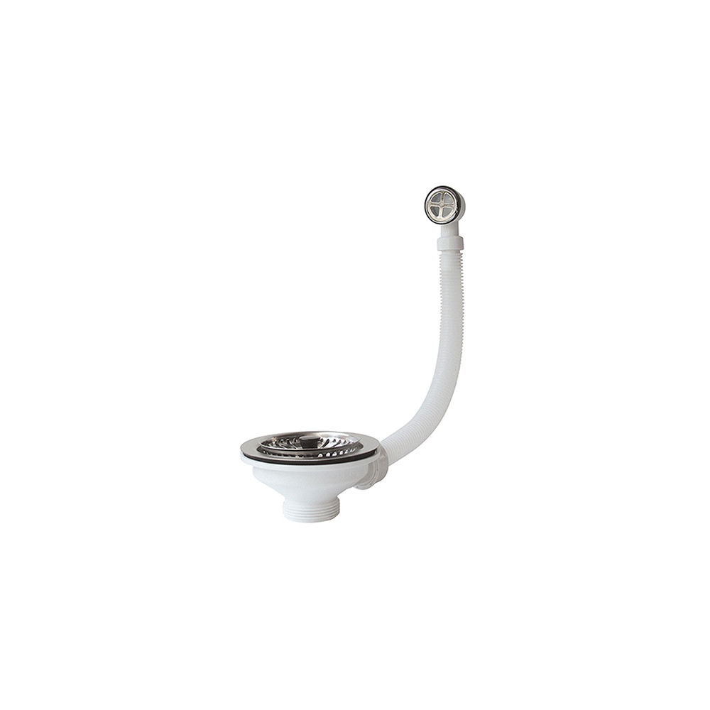 La bonde à panier pour évier est équipée d'un système de commande manuelle et d'un trop-plein percé. Elle est conçue pour les éviers avec trou de bonde de 90 mm.