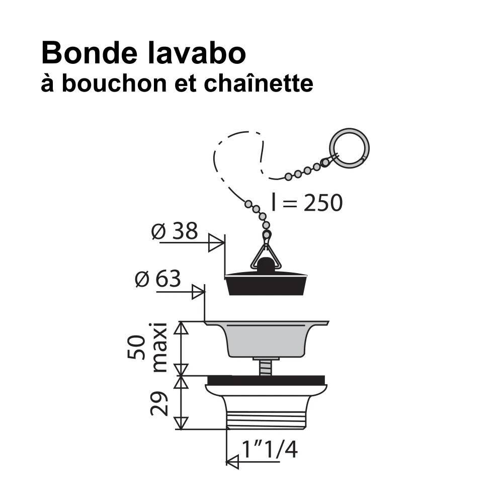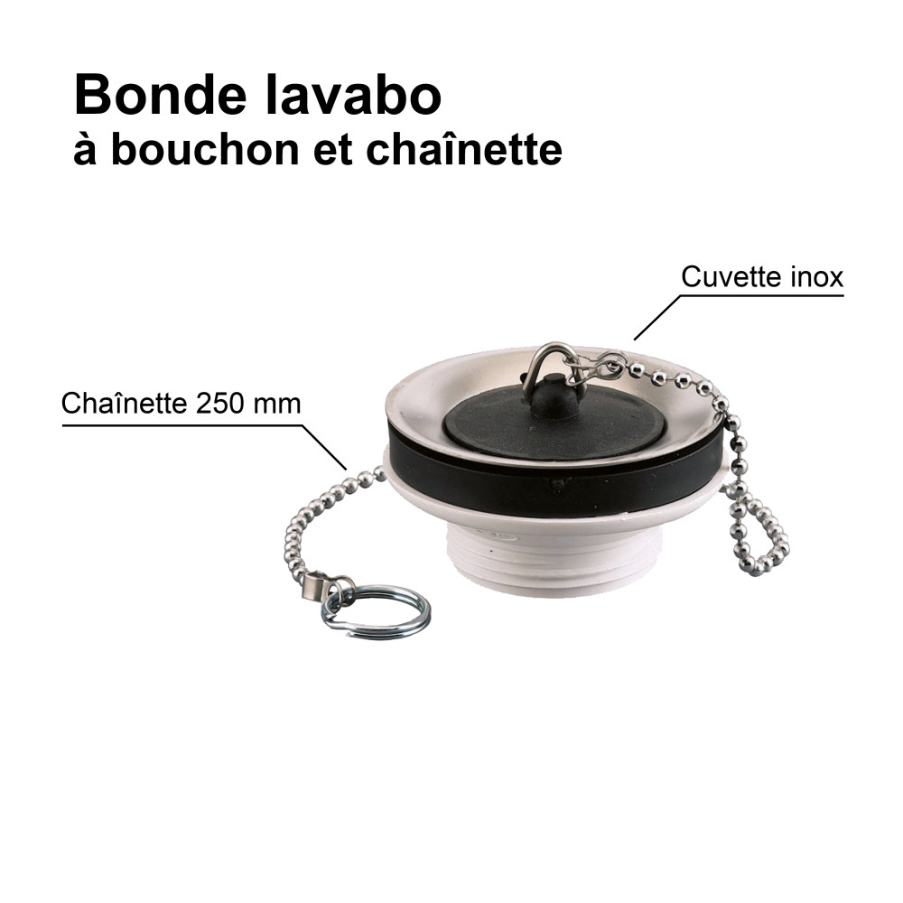 Bonde de lavabo à bouchon et chaînette - Plastique
