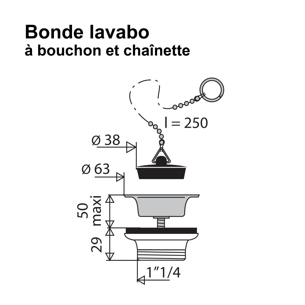 La bonde de lavabo à bouchon et chaînette est conçue pour équiper les lavabos. Son système à bouchon permet de retenir ou d'évacuer l'eau selon les besoins.