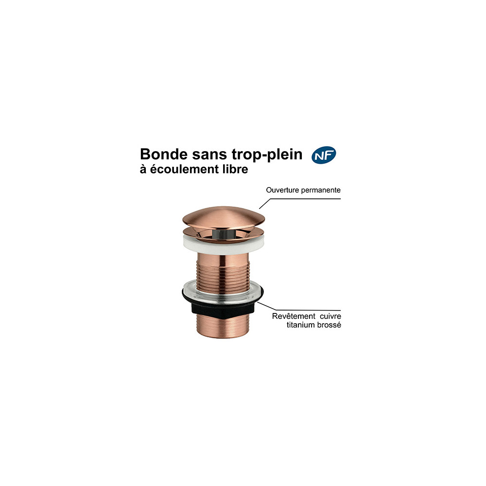 La bonde lavabo à écoulement libre est conçue pour les vasques sans trop-plein. Elle assure une ouverture permanente de l'écoulement, évitant tout risque de débordement.