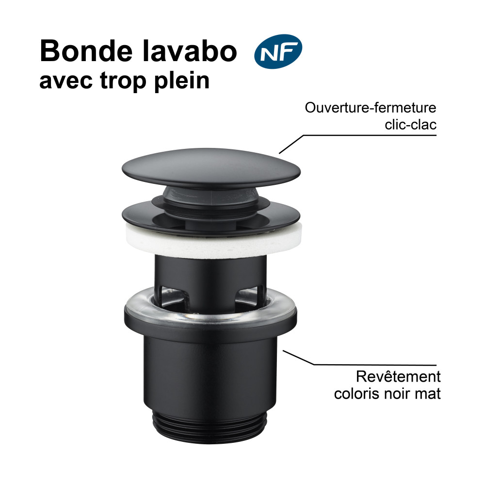Bonde de lavabo clic-clac - avec trop plein - Certifié NF