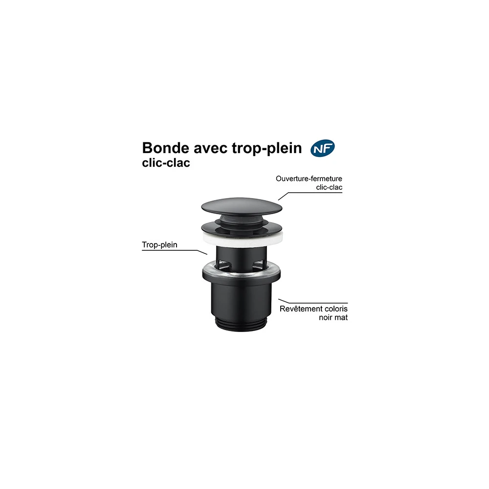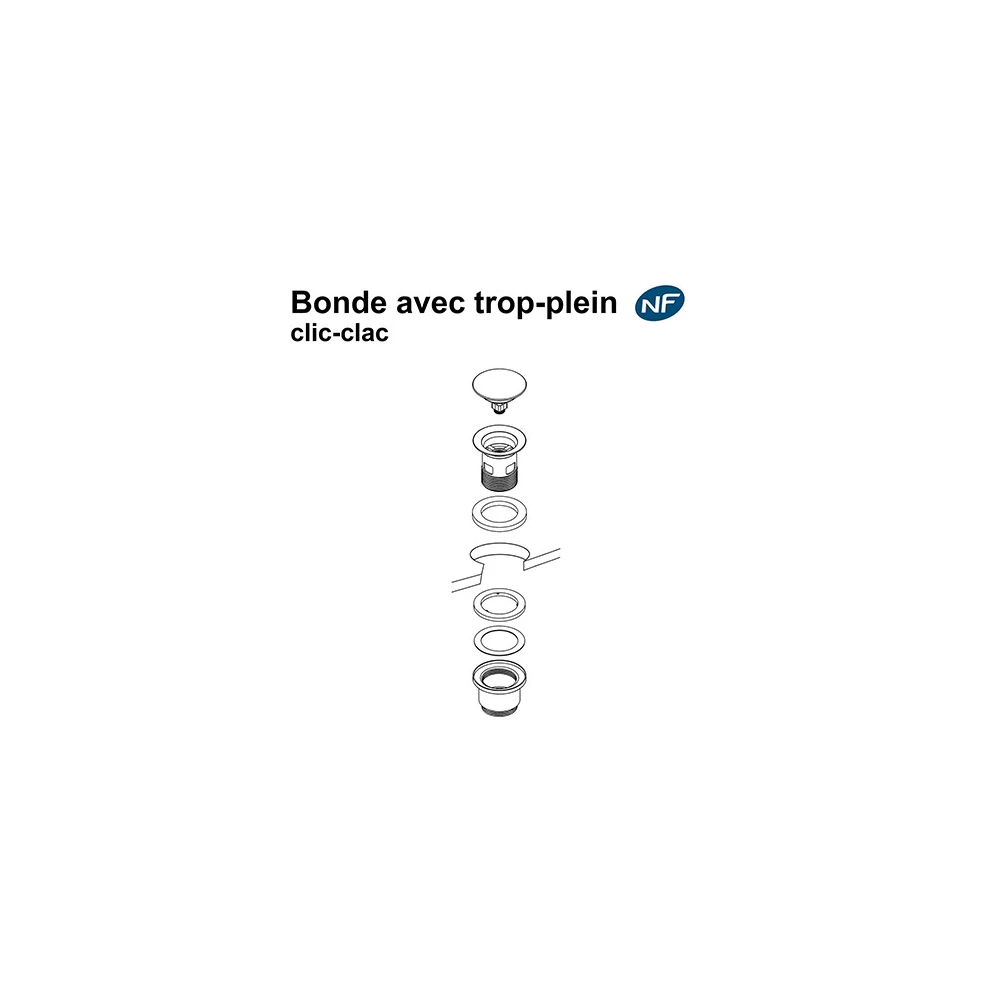 Bonde clic-clac avec trop-plein, pratique et fiable, s'ouvre et se ferme d'une simple pression du doigt.