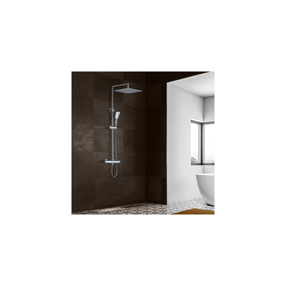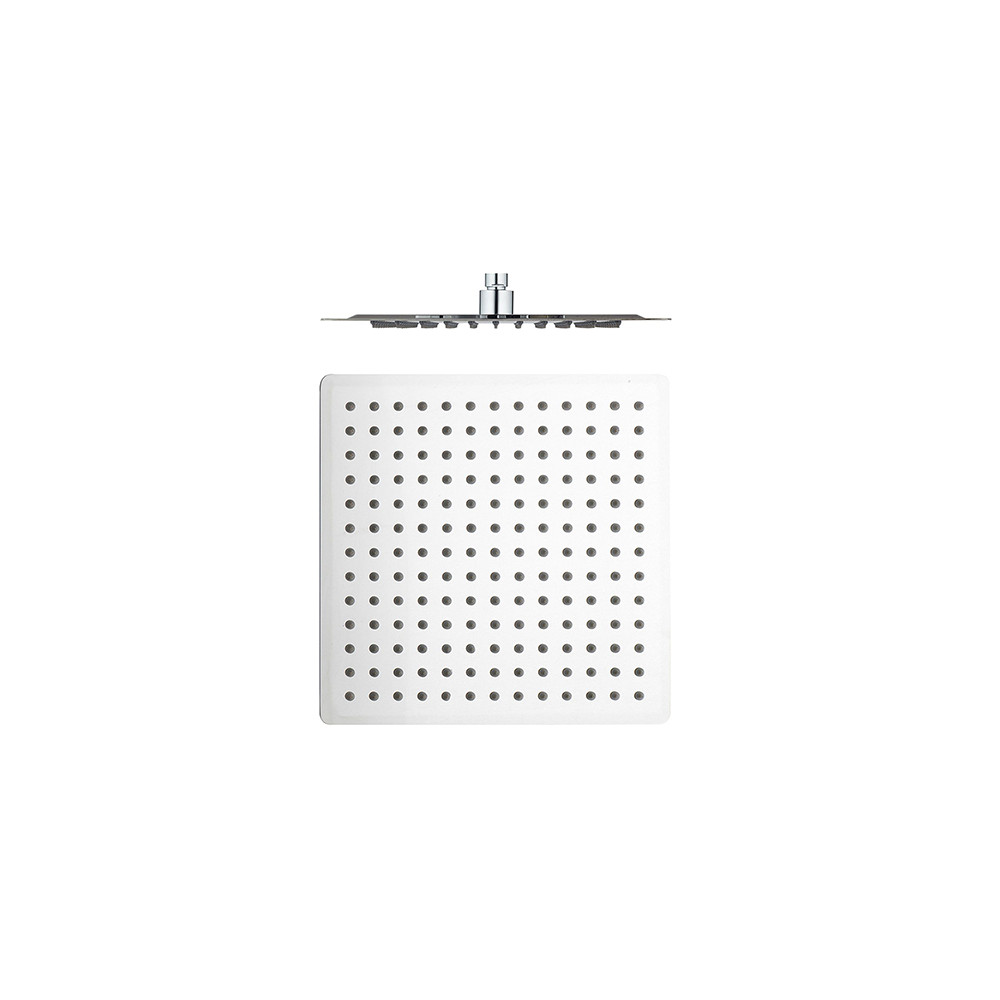 La tête de douche AKAMÉ 300x300 NF diffuse un jet pluie large et constant grâce à son régulateur de débit intégré. Les picots anti-calcaire facilitent le nettoyage et assurent la longévité du produit.