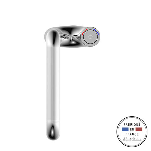 - Ouverture/fermeture par bouton poussoir sur le dessus : tourner la manette à gauche ou à droite pour régler la température de l’eau (le débit de l’eau est directement géré par la cartouche).