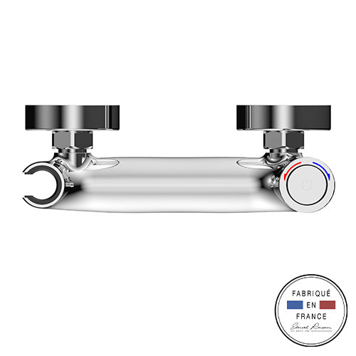 - Ouverture/fermeture par bouton poussoir sur le dessus : tourner la manette à gauche ou à droite pour régler la température de l'eau (le débit de l'eau est directement géré par la cartouche)